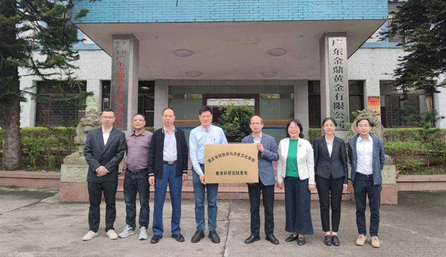 本网讯 为贯彻落实党的二十大精神,推动广东省委“百县千镇万村高质量发展工程”在肇庆落地开花,搭建校企合作产教融合平台,提升应用型人才培养质量,4月6日,旅游学院与广东金鼎黄金有限公司举行教学科研实践基地授牌仪式。旅游学院院长李朝军、党委书记杨雪梅出席活动。
