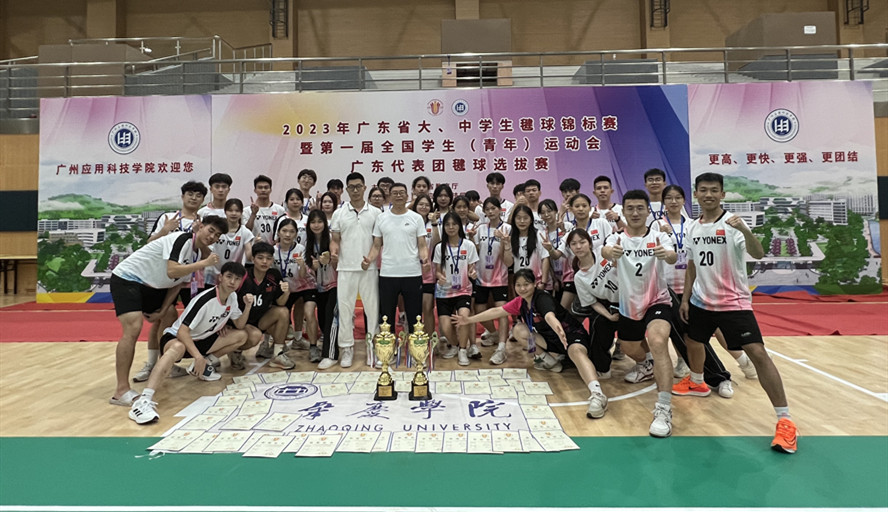 本网讯 2023年广东省大、中学生毽球锦标赛暨第一届全国学生(青年)运动会广东代表团毽球选拔赛5月22日在广州应用科技学院(肇庆校区)闭幕,威廉希尔官网代表队参加甲组和乙组的比赛。在领队刘汉坤,教练何波老师和周泽辉老师的带领下,全体队员发扬团结、拼搏、奋斗的精神,打好每一场赛事,再创新高。