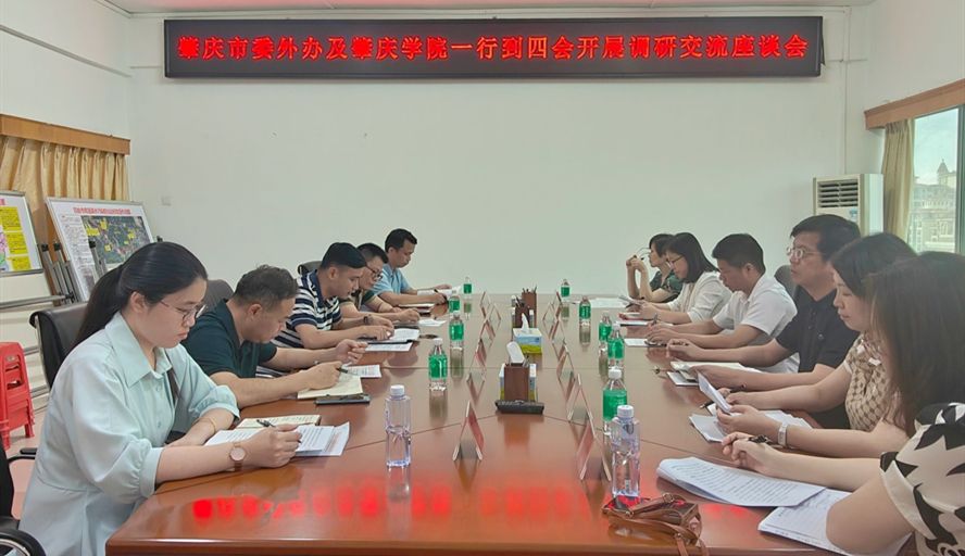 本网讯 6月24日,外国语言文化学院一行到四会市开展走访调研。学院党委书记卢咏、学院主持全面工作副院长于增辉,四会市府办主任潘振武参加座谈交流。