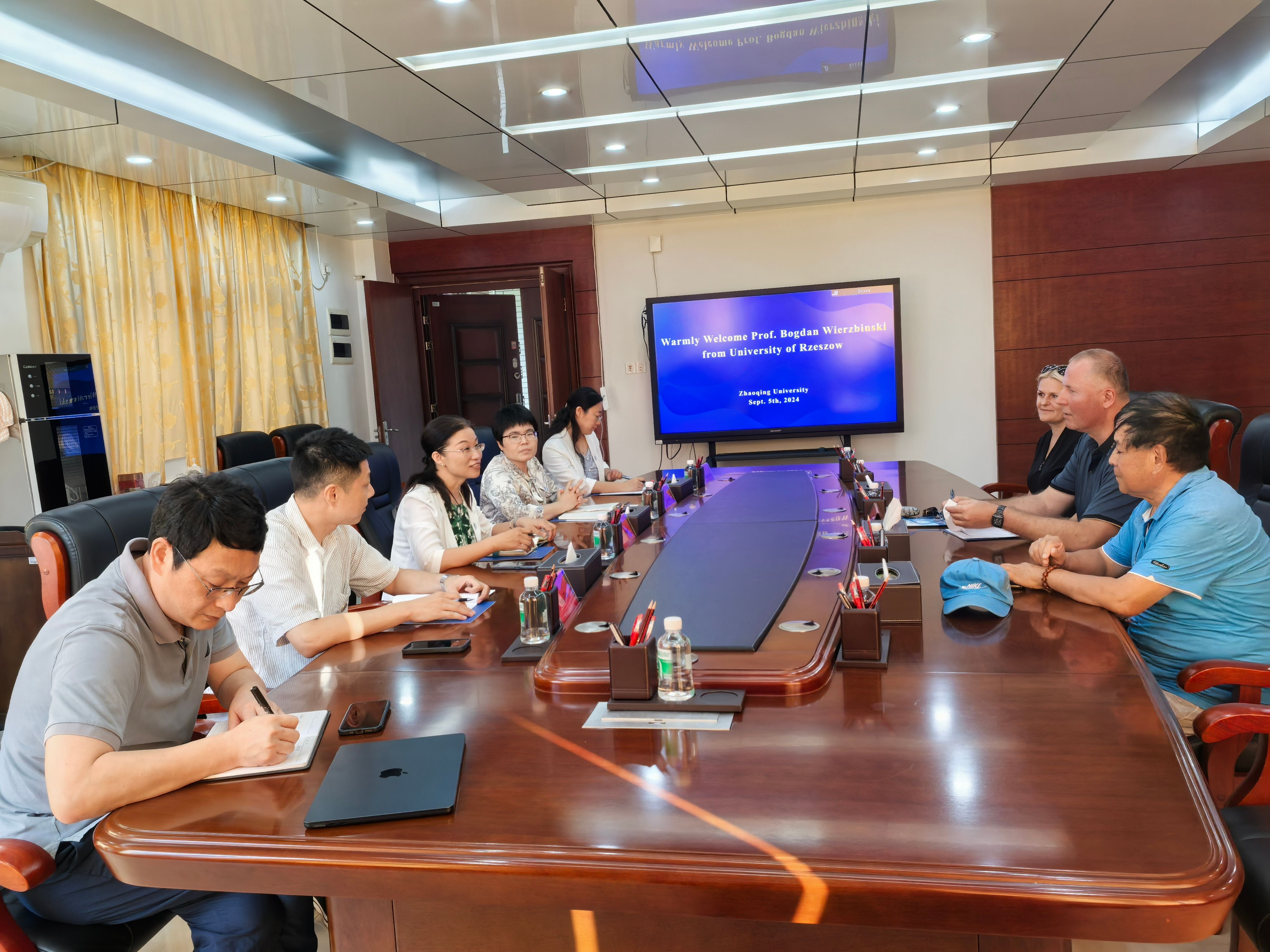 对外交流合作部部长李赛男热烈欢迎Bogdan Wierzbinski教授一行,并介绍了威廉希尔官网的整体情况,总结回顾了威廉希尔官网多年来与波兰高校开展合作交流的情况,同时就两校建立正式伙伴关系、推动师资交流、联合培养等提出具体设想,表示对两校未来开展合作充满期待。政法学院院长许英和外国语言文化学院副院长李春明分别介绍了各自学院的发展概况,并表达了与热舒夫大学在师生交流、合作科研、区域国别研究等方面开展合作的愿望。