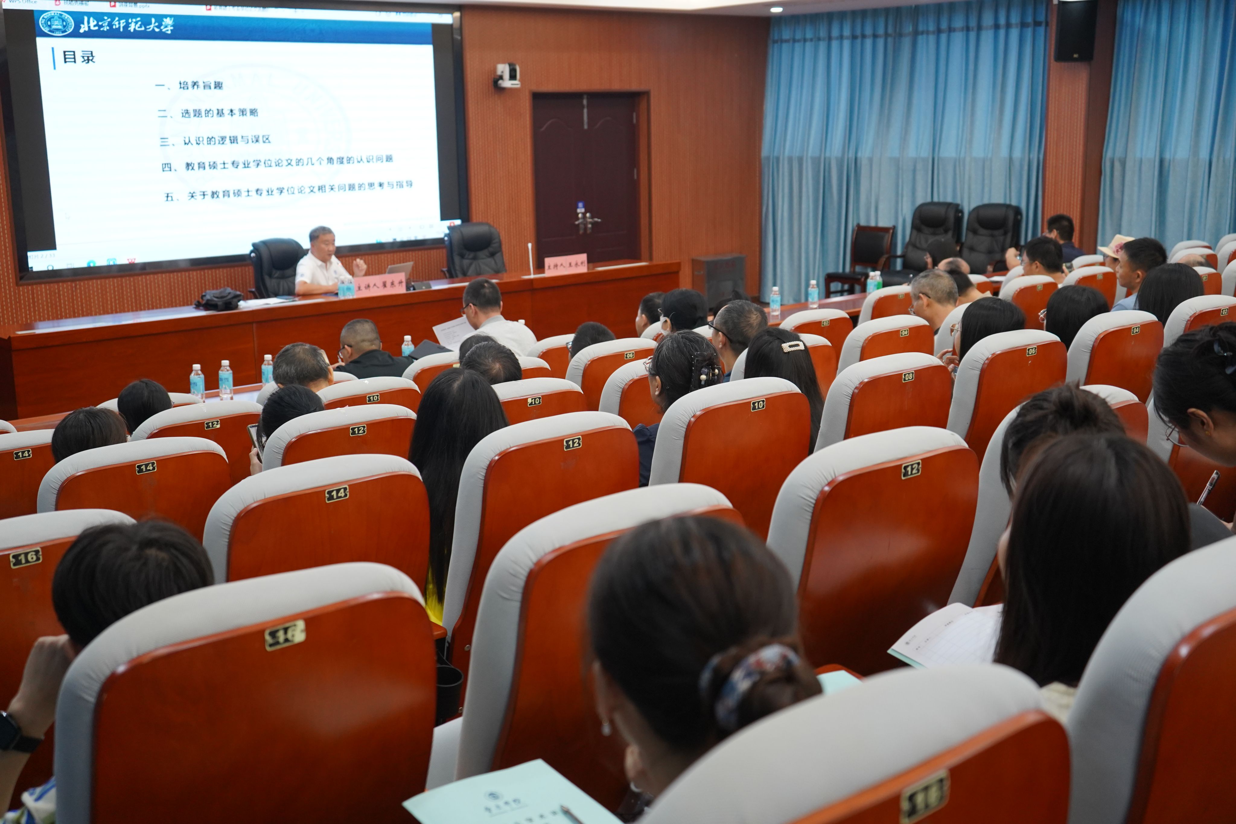 翟东升教授从教育硕士的培养旨趣入手,进而谈到了学位论文选题的基本策略、认识逻辑与误区,最后从教育硕士学位论文总体要求、具体情况等角度提出了对教育硕士学位论文的认识问题和相关思考。他强调,要进一步厘清教育硕士培养目标以及各培养领域的概念,在真正理解和掌握教育硕士研究生人才培养规范要求的基础上,探索专业学位研究生人才培养路径。