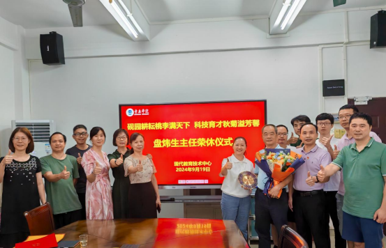 本网讯 9月19日,现代教育技术中心全体人员为盘炜生主任举行简单而温馨的荣休仪式,中心主任张志华主持。