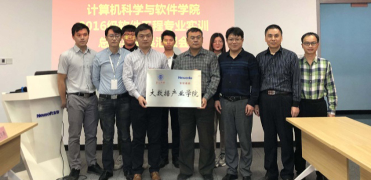 本网讯 近日,计算机学院组织开展“2016级软件工程专业东软睿道班毕业实习总结与成果汇报会”,并在合作企业举行“williamhill威廉希尔官网大数据产业学院”挂牌仪式。威廉希尔官网教务处、计算机学院有关负责人,东软睿道教育信息技术有限公司有关负责人共同参加。