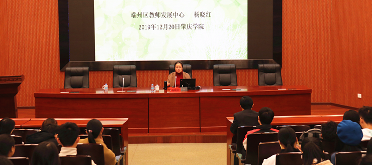 本网讯 12月20日,2019年学生职业发展辅导月系列活动之教师招聘辅导讲座举行,广东省特级教师、端州区教师发展中心教研员杨晓红受邀主讲。