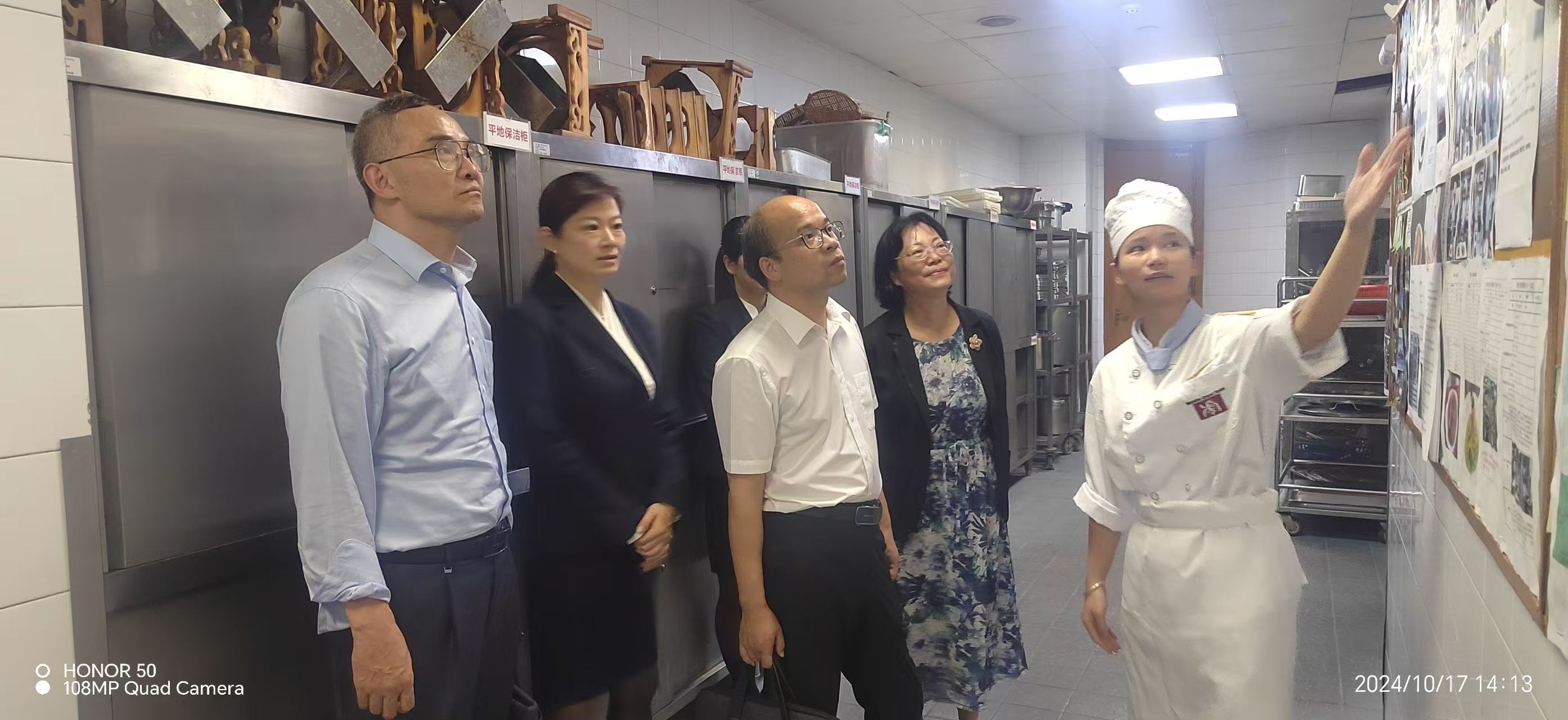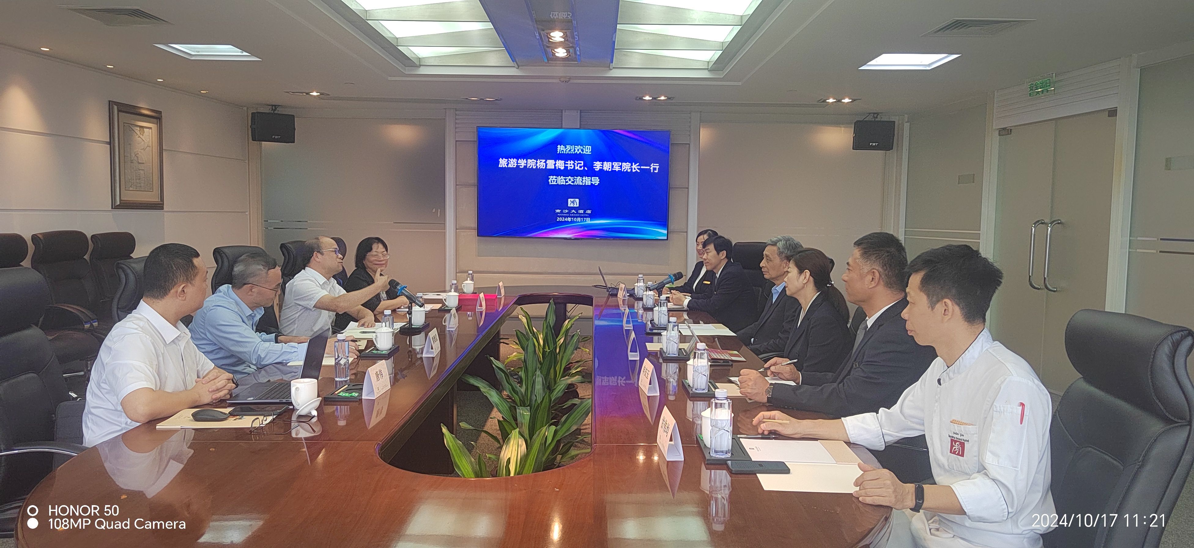 本网讯 10月17日,旅游学院党委书记杨雪梅、院长李朝军一行5人到广州南沙大酒店开展教育部供需对接项目调研,洽谈校企合作事宜并开展访企拓岗工作。南沙大酒店总经理杨结热情接待旅游学院一行。