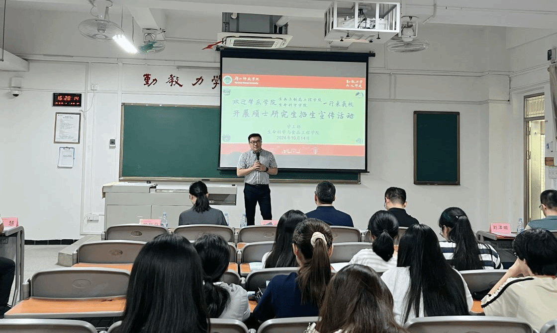 本网讯 10月14日,食品与制药工程学院、生命科学学院共同前往韩山师范学院开展生物与医药硕士研究生招生宣讲活动。食品与制药工程学院党委书记林晓忠、副院长刘永以及生命科学学院副院长陈华等人参加活动。