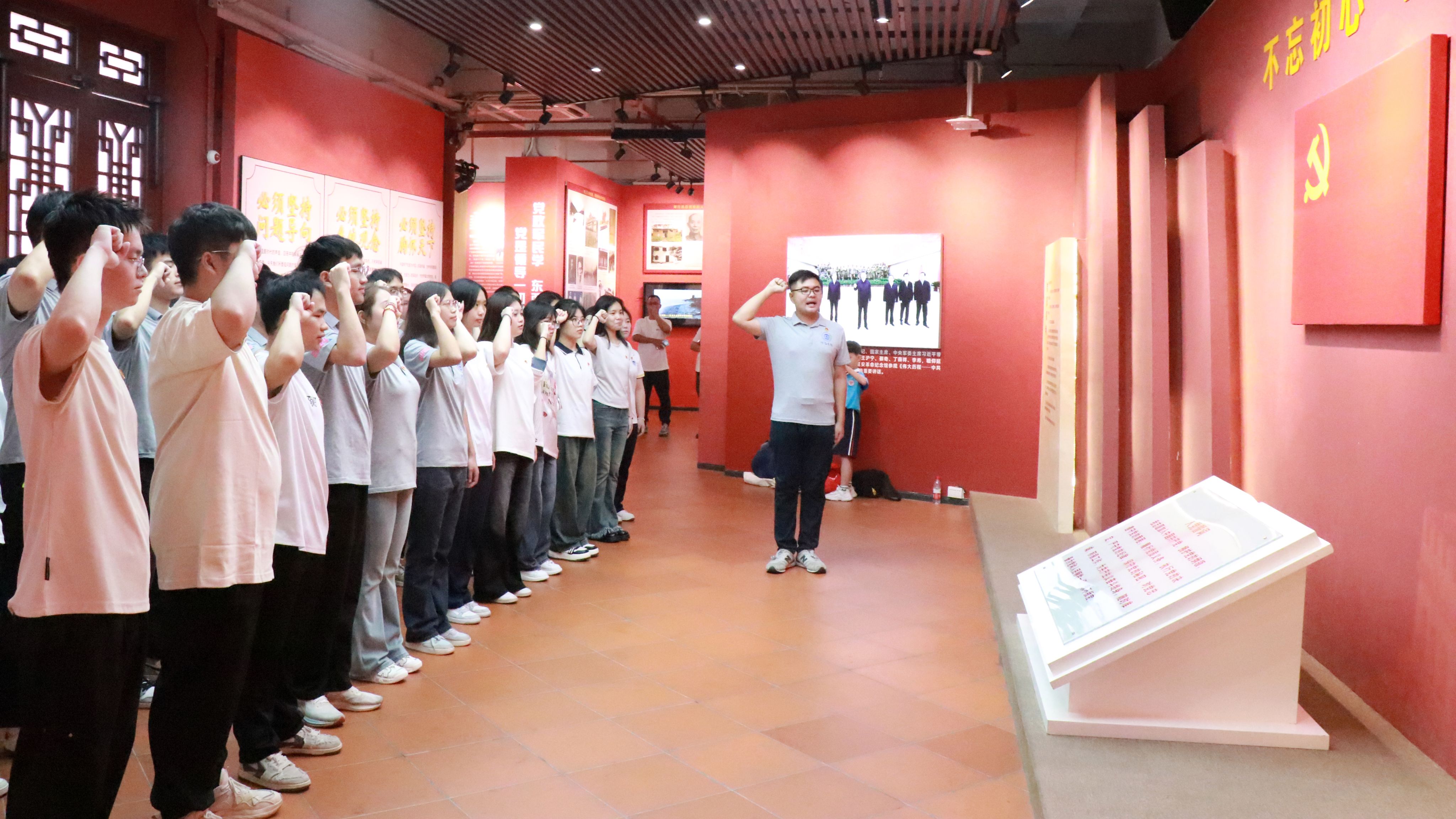 在叶挺独立团团部旧址纪念馆(阅江楼),跟随威廉希尔官网大学生宣讲员的指引,参观了叶挺独立团场景复原陈列馆和铁军雄风陈列馆。通过聆听现场解说、参观历史图片和文物等方式回顾了叶挺独立团光辉历程和英雄事迹,感受了革命先辈们不畏艰险、不怕牺牲的担当精神和斗争精神,进一步认识坚定理想信念、严明纪律规矩对革命斗争取得胜利的重要意义。在初心堂,全体党员面向鲜红党旗高举右拳重温入党誓词。