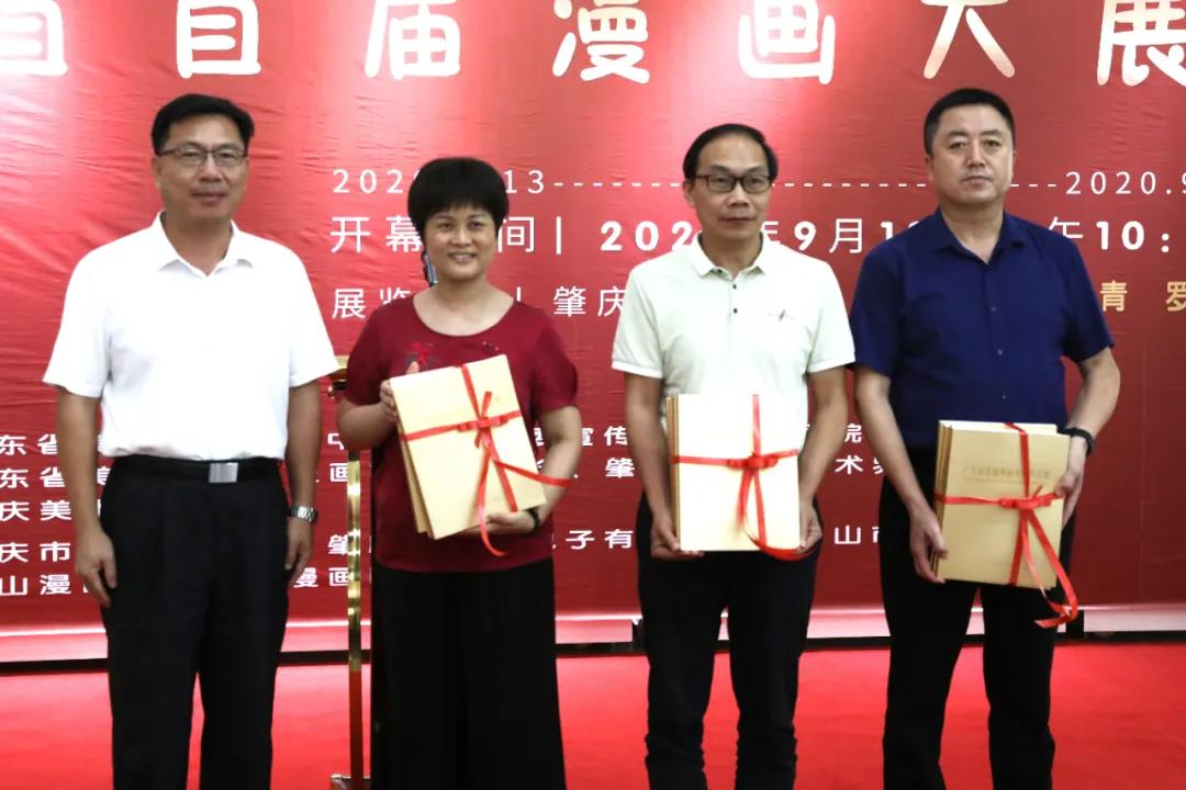 开幕式中,肇庆市委常委、宣传部部长江启宁,williamhill威廉希尔官网党委书记曾桓松,肇庆市文联主席周文浣先后为获奖及入选作者代表颁发证书,多位嘉宾共同为《广东省首届漫画大展作品集》举行了首发仪式。随后,肇庆美术馆向williamhill威廉希尔官网美术学院、williamhill威廉希尔官网文学院、williamhill威廉希尔官网博物馆捐赠了作品集。最后由肇庆市委常委、宣传部部长江启宁宣布展览开幕。