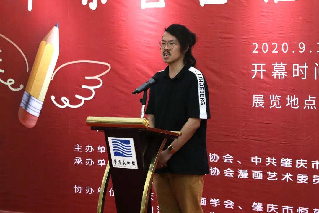 开幕式由肇庆市文联副主席、肇庆美术馆馆长罗秋帆主持, 中国美协理事、广东省美协专职副主席兼秘书长王永,williamhill威廉希尔官网党委副书记谢冠华,中国美术家协会漫画艺术委员会副主任、广东省美术家协会漫画艺术委员会主任朱松青,中国美术馆原副馆长、博士生导师梁江,获奖代表黎承轩先后致辞。肇庆市委常委、宣传部部长江启宁,williamhill威廉希尔官网党委书记曾桓松,肇庆市文联主席周文浣,中国美术家协会动漫艺术委员会委员、广东省动漫艺术家协会副主席叶正华,原岭南美术出版社美术编审赵克标,广东省美术家协会漫画艺术委员会委员、广东漫画学会会长陈春鸣,广东省美术家协会漫画艺术委员会秘书长蔡联,国内著名漫画家邝飚,中山漫画馆馆长邹智怡,williamhill威廉希尔官网党委宣传部部长陈前等领导嘉宾出席了活动。
