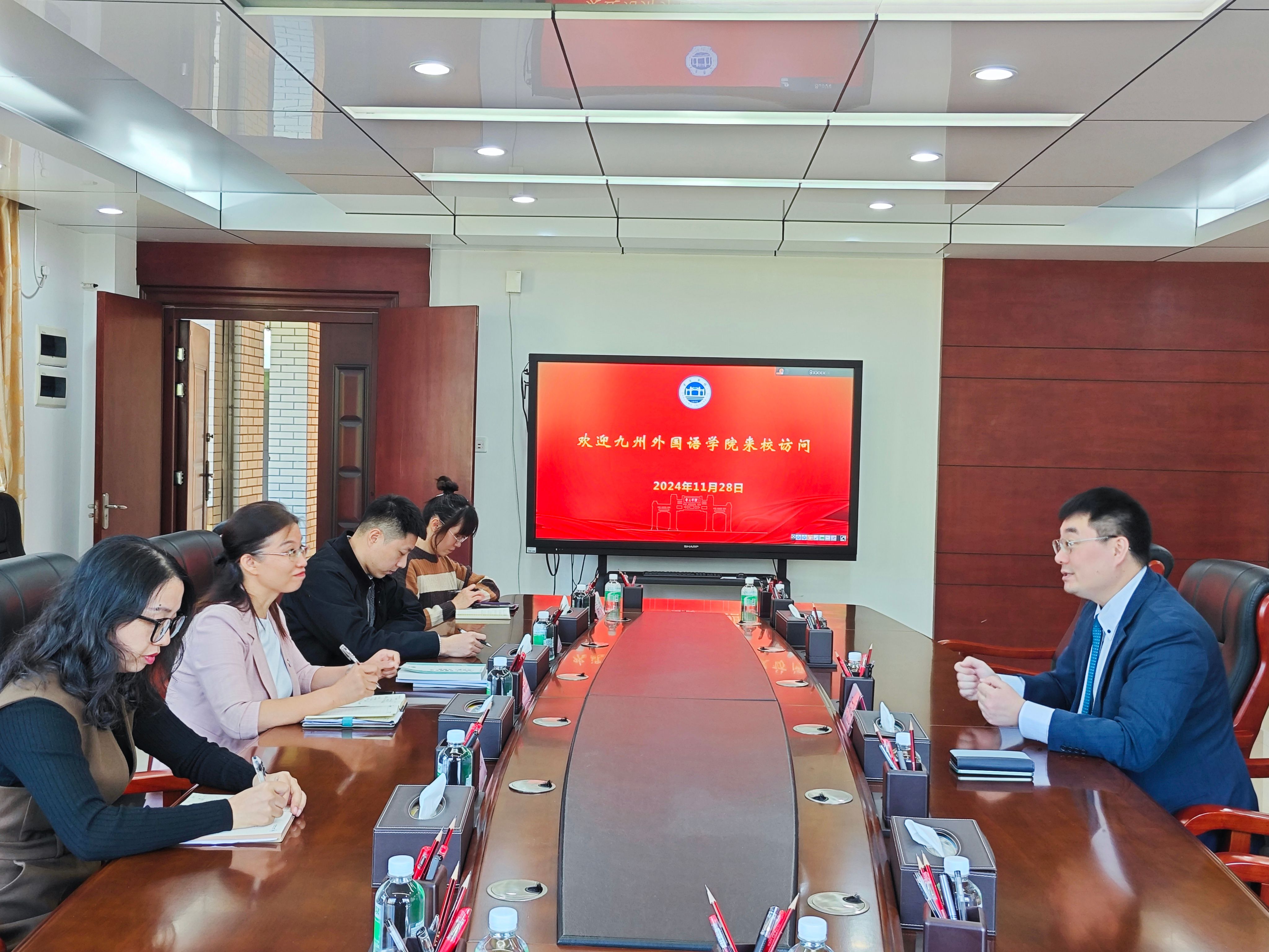 本网讯 11月28日,日本九州外国语学院副院长解友克教授莅临威廉希尔官网进行回访。此次访问是对威廉希尔官网领导于今年10月出访该校并签订友好合作协议的积极回应,标志着两校合作关系的进一步深化。威廉希尔官网正式将九州外国语学院作为日语海外实习基地,并已启动相关项目,为学生提供宝贵的海外实习机会。