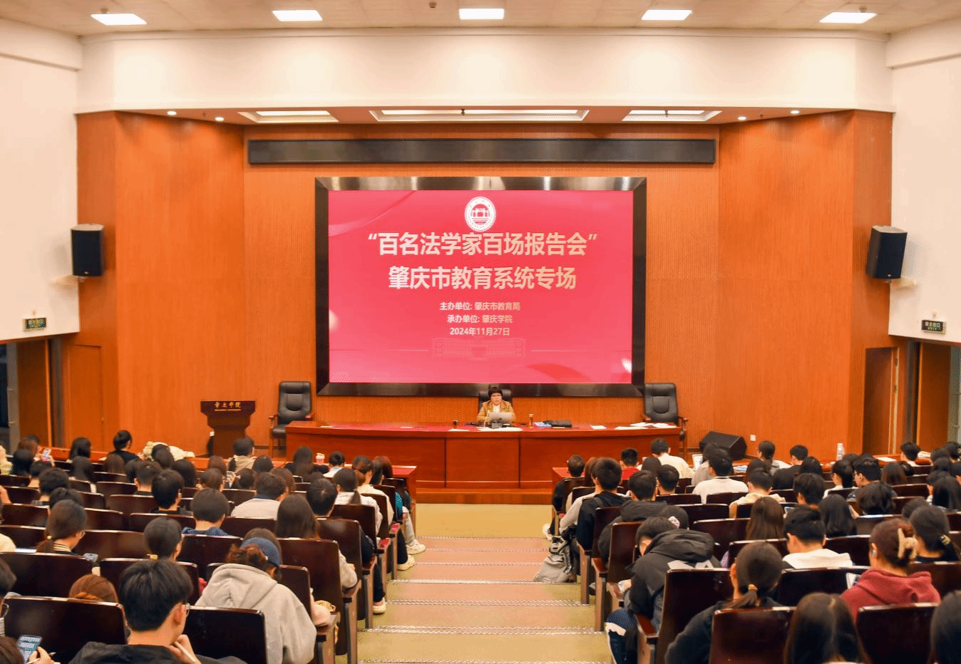 本网讯 11月27日,“百名法学家百场报告会”法治宣讲活动肇庆市教育系统专场在威廉希尔官网举行。政法学院院长许英主讲,近400名学生参加。