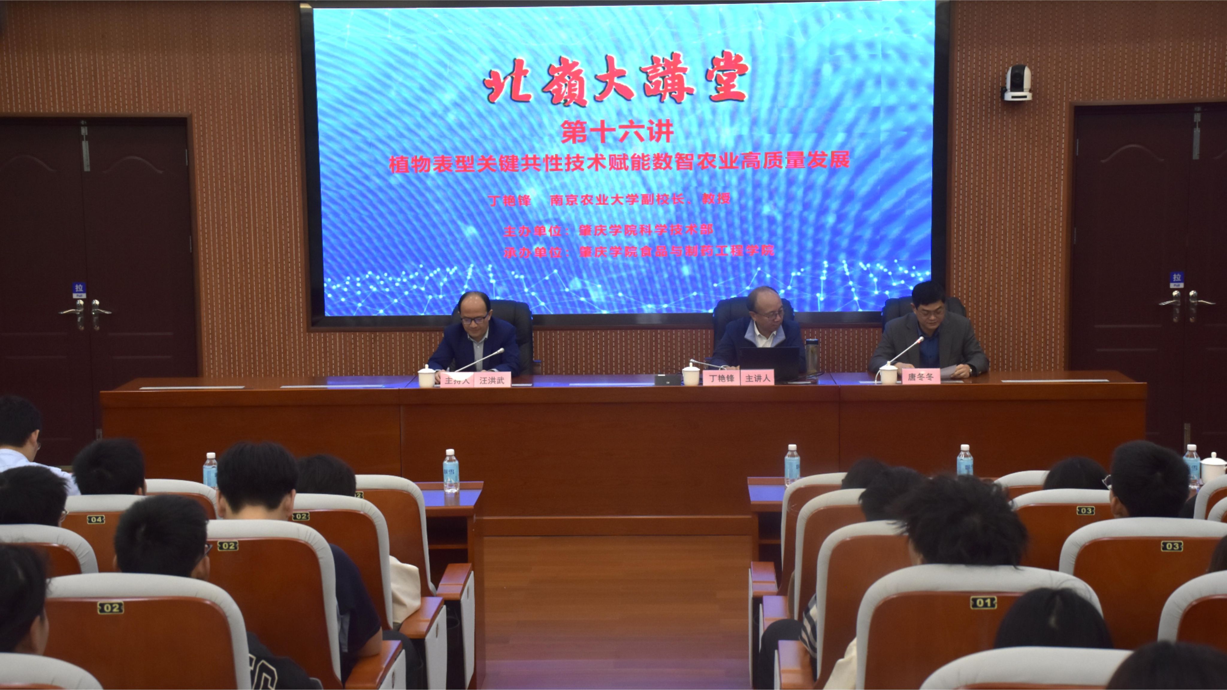 本网讯 12月1日,北岭大讲堂第十六讲“植物表型关键共性技术赋能数智农业高质量发展”开讲。本次讲堂特邀南京农业大学党委常委、副校长,中国作物学会副理事长丁艳锋教授莅临主讲,南京农业大学校办副主任刘方,williamhill威廉希尔官网副校长唐冬冬出席,食品与制药工程学院党委书记林晓忠、院长汪洪武及师生代表共130余人参加。