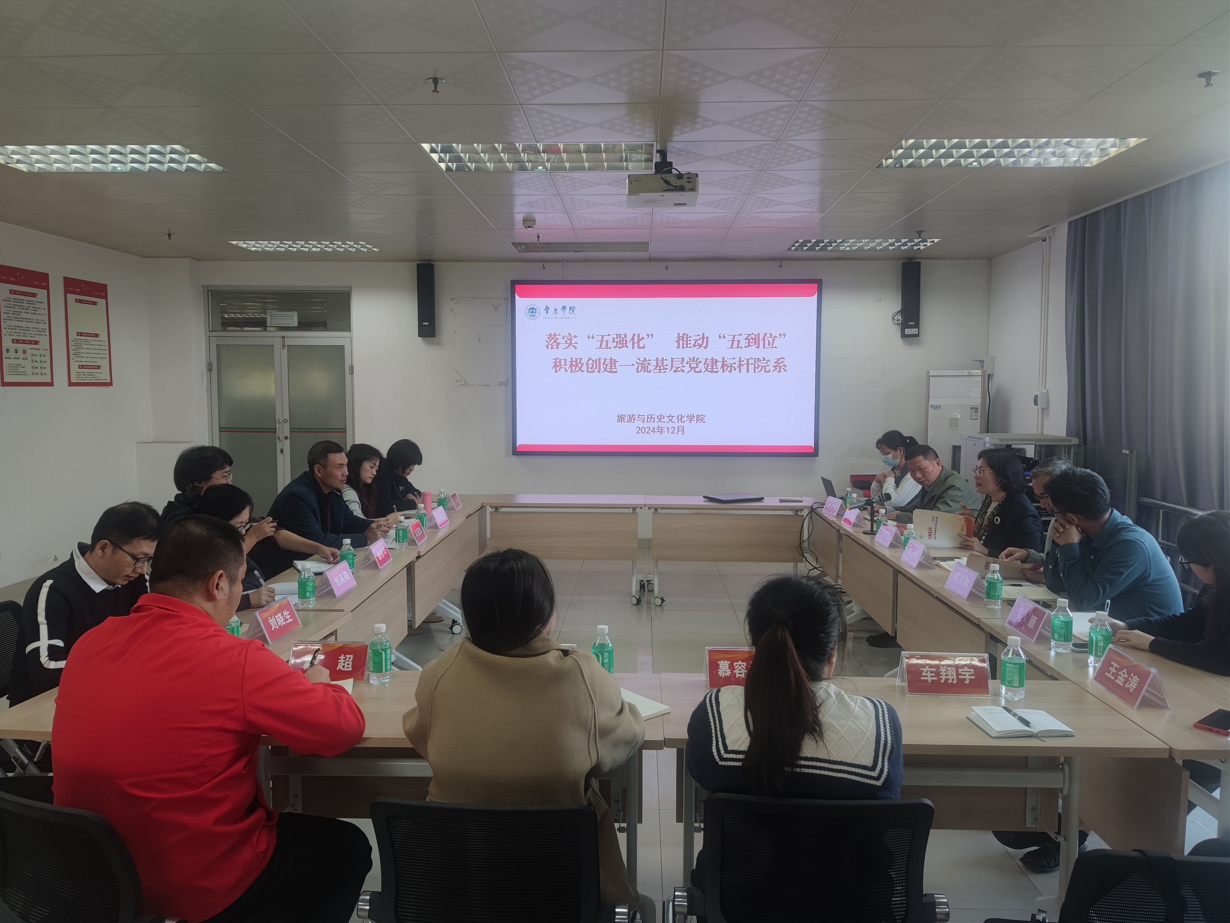 旅游与历史文化学院党委书记杨雪梅介绍了标杆院系的创建过程、重点任务完成情况,着重从创建培育成果、建设成效以及建设经验等方面分享了旅游学院标杆院系建设的相关经验和做法。她表示,旅游学院党委充分发挥党组织的政治核心作用,彰显党建特色品牌,严格做到“五个到位”,以高质量党建引领学院高质量发展。
