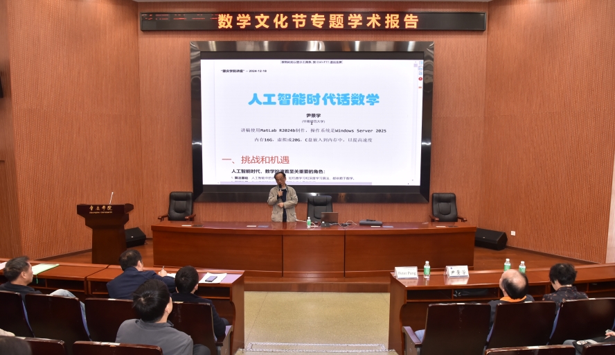 会上,尹景学教授作了题为《人工智能时代话数学》的专题报告,详细介绍了人工智能时代数学的重要性及其面临的挑战与机遇。他指出,随着人工智能的快速发展,数学作为其核心基础,其重要性愈发凸显。并通过不等式思维方式,深入浅出地讲解社会上流行Kimi chatGPT 等AI工具运算,让师生们对人工智能与数学的紧密关系有了更深刻的理解。