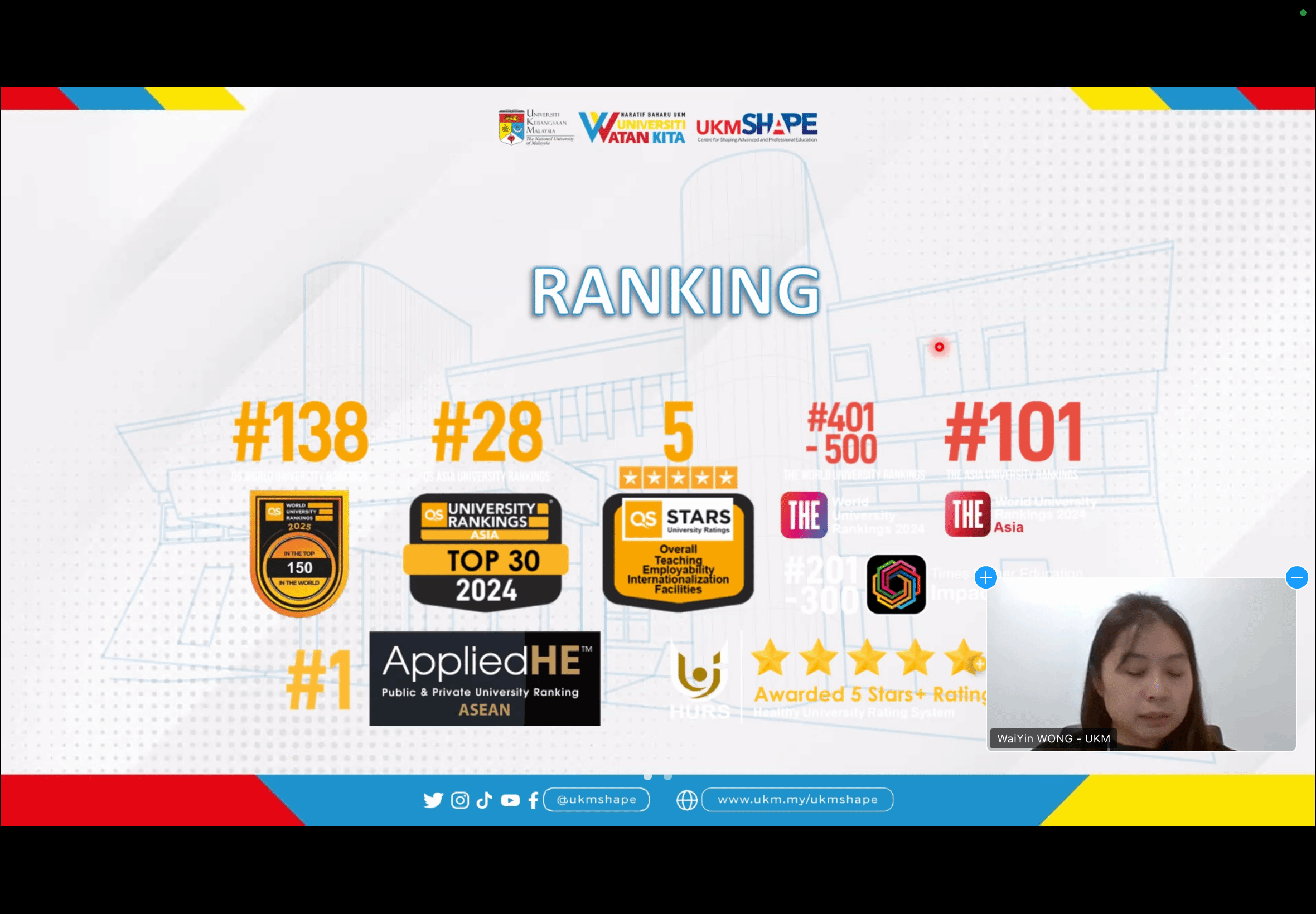 据悉,马来西亚国立大学成立于1970年,是马来西亚政府创办的第三所公立大学,也是马来西亚五所研究型大学之一。该校在QS 2025世界大学排名中位列第138位,QS亚洲大学排名第28位。马来西亚国立大学以其卓越的教学质量和研究成果赢得了国际声誉,尤其在工程、商业、医学和科技等领域处于领先水平。本次线上会议是继2024年学校出访团访问马来西亚国立大学后的一次重要交流活动,为推进下一步合作打下良好基础。