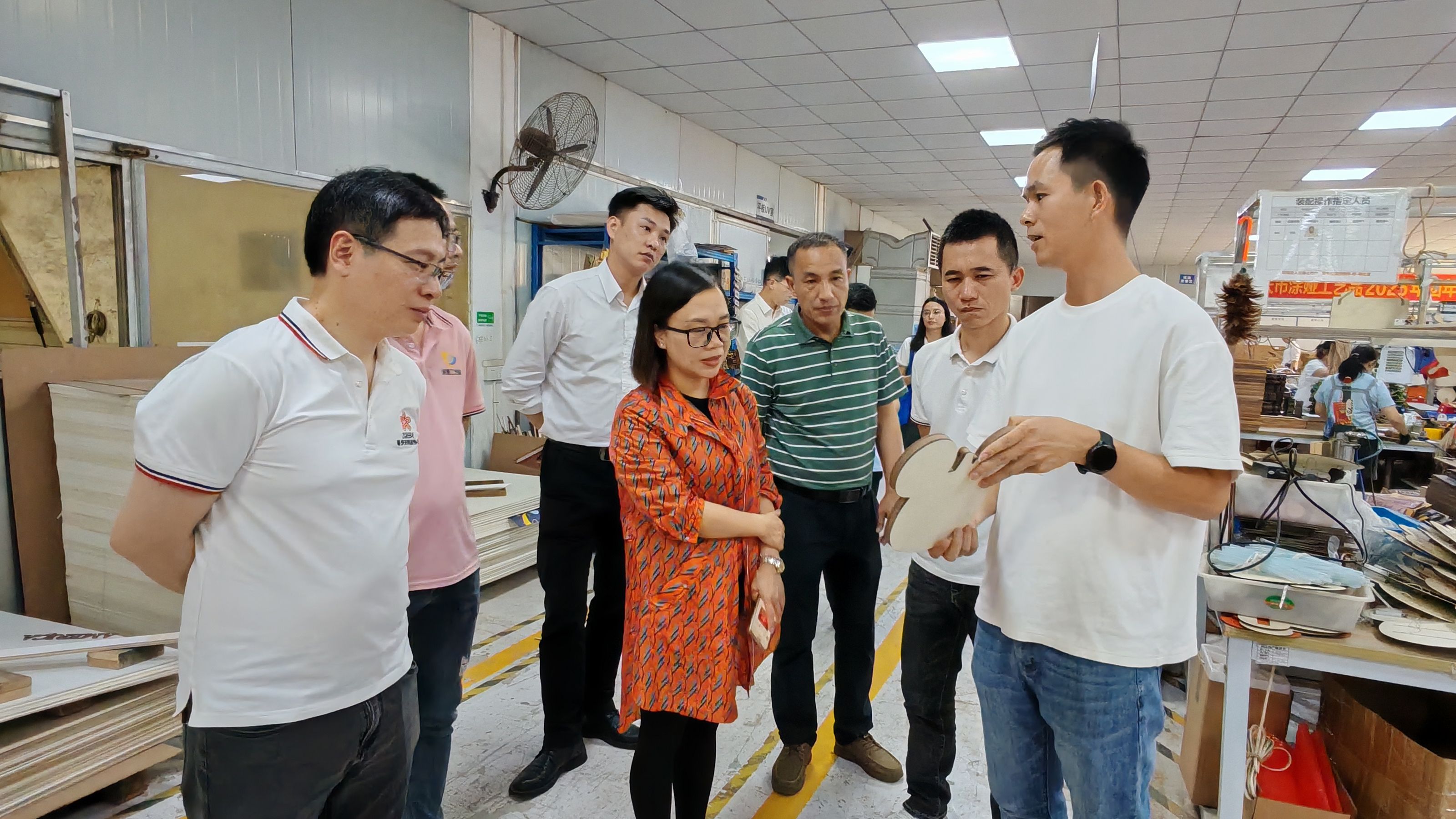 与会人员首先实地考察了肇庆市爱尚工艺品有限公司电商产品生产基地各个功能区域,了解其“工贸一体”的跨境电商运营模式。随后在肇庆市君和科技有限公司的跨境电商运营基地观摩其运营团队的线上实操,并开展座谈交流。