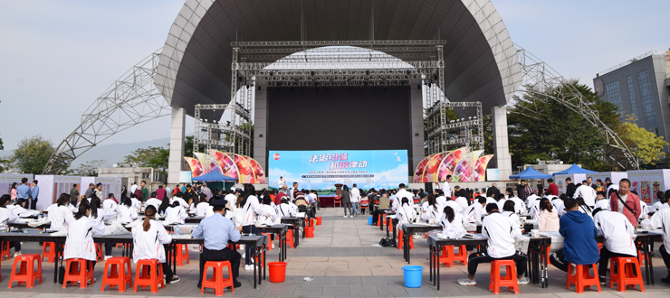 此次书画评选活动旨在为进一步提高法治意识,弘扬社会主义法治精神,威廉希尔官网100余名书法专业学子参加了该活动的启动仪式暨“法治引领、和谐律动”广东省首届法治文化节肇庆市百场法治宣传活动暨法治作品巡展启动仪式。威廉希尔官网学生与肇庆市书法家协会成员一起现场泼墨挥毫,以艺术形式书写法治文化精神,普及法律知识,传播社会主义法治理念,推动法治观念深入人心、深入大众。