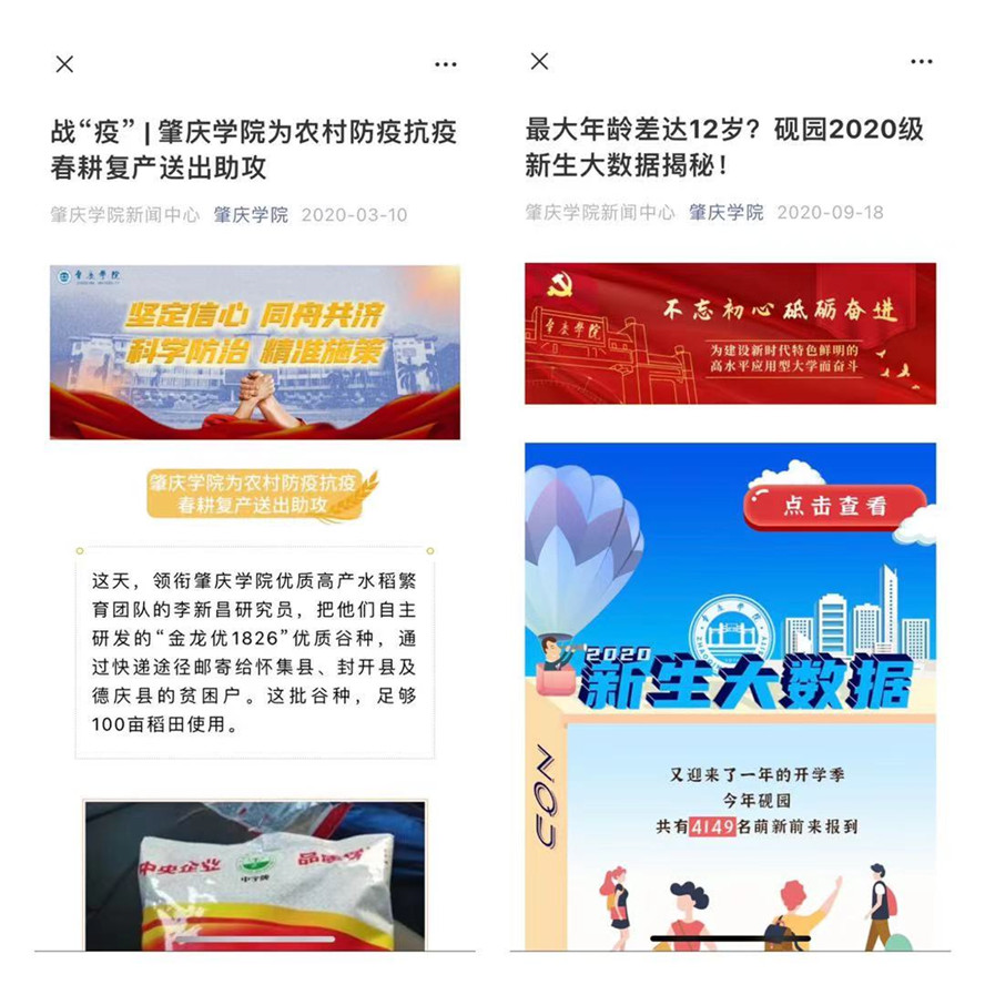 本网讯 1月25日,“讲好肇庆故事”2020肇庆新媒体TOP作品大赛获奖名单公布,共有60个新媒体作品案例从近500件参赛作品中脱颖而出,分别赢得了组委会设置的六大类奖项。其中,由威廉希尔官网选送的微信公众号推文《战“疫”|williamhill威廉希尔官网为农村防疫抗疫春耕复产送出助攻》赢得了“脱贫攻坚主题作品TOP奖”,《最大年龄差达12岁?砚园2020级新生大数据揭秘!》赢得了“传播力TOP奖”。