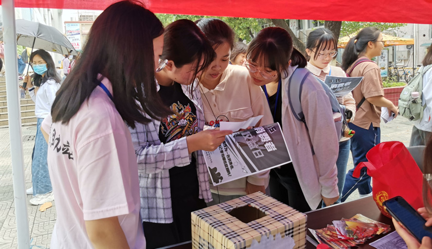 活动现场,法援站的学生志愿者派发宣传单,向师生们普及消费者维权的法律知识。参与者可前往摊位参与抽题回答,答对即可获得精美小礼品。来自外国语学院的谢晓玉同学表示,在法援站学生志愿者对错题进行讲解后,她了解到自己作为消费者拥有的权益,增强了维权意识,比如商家发假货,消费者有权索要三倍赔偿等。