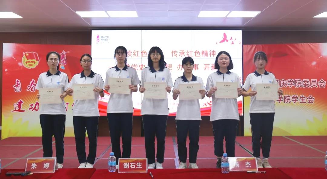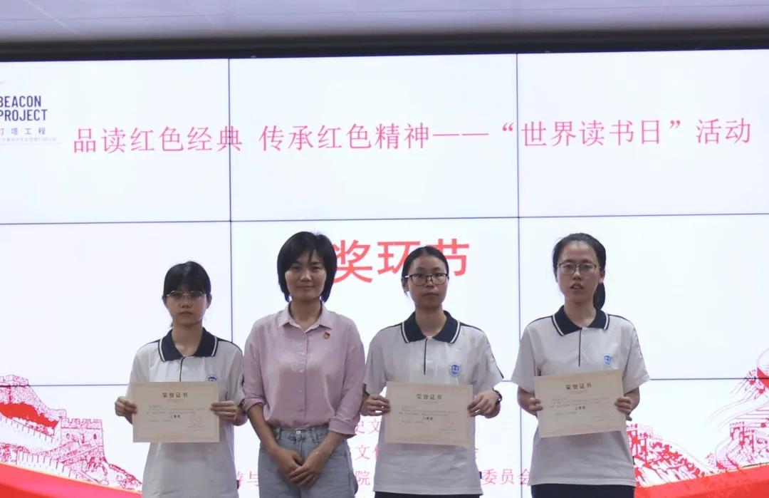 院团委书记朱婷为冯昇韵、祝兆勤、王紫薇三位同学颁发三等奖