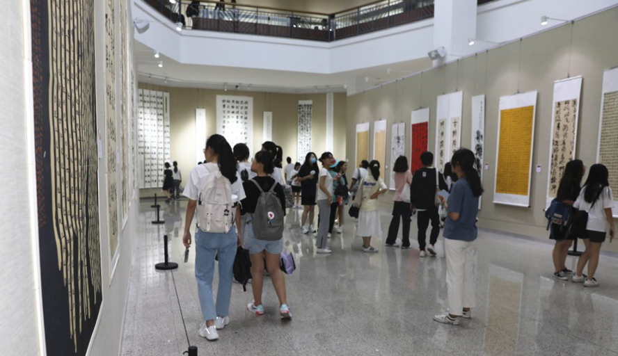 本网讯 5月24日,由教务处、就业指导处、文学院、美术馆共同主办的2021届书法学专业毕业作品展在美术馆开幕。200多幅书法展品,全面展示了文学 院书法学专业的教学成果。