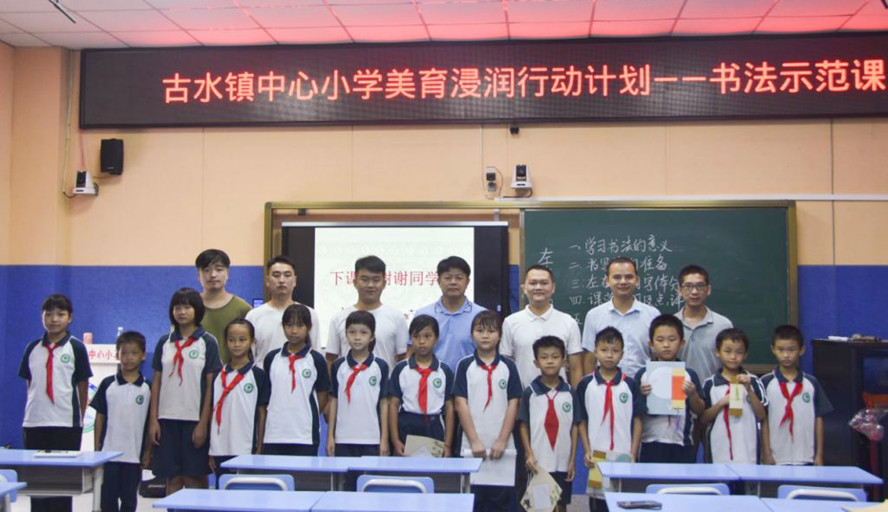 书法教育是威廉希尔官网和广宁县古水镇中心小学美育浸润行动计划的一个环节。为深入贯彻落实美育浸润行动计划,本学期文学院派遣3名优秀书法学专业学生到古水镇中心小学进行教育实习,与古水镇中心小学的师生一起建立和完善书法美育浸润课堂。通过示范课,更好地培养实习生的书法课堂教学技能,以适应小学书法教学的要求,完成书法教学任务。