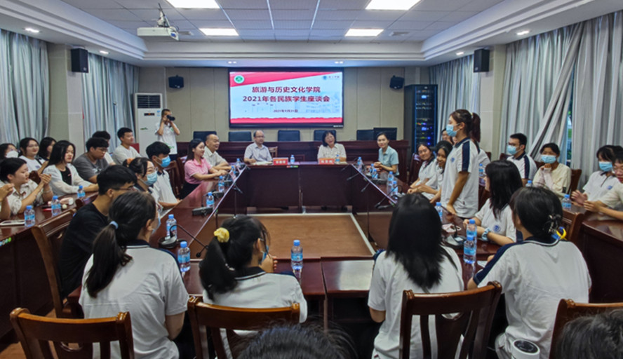 9月21日,学院举行民族学生座谈会。来自藏族、土家族、回族、侗族、穿青族等10个民族的40余名少数民族学生、新疆学生欢聚一堂,共庆佳节。座谈会体现了学院对少数民族学生的关心与关爱,增进了彼此之间的沟通与交流,帮助各少数民族同学更好的了解适应大学生活,更快融入旅游学院这个温暖的大家庭。