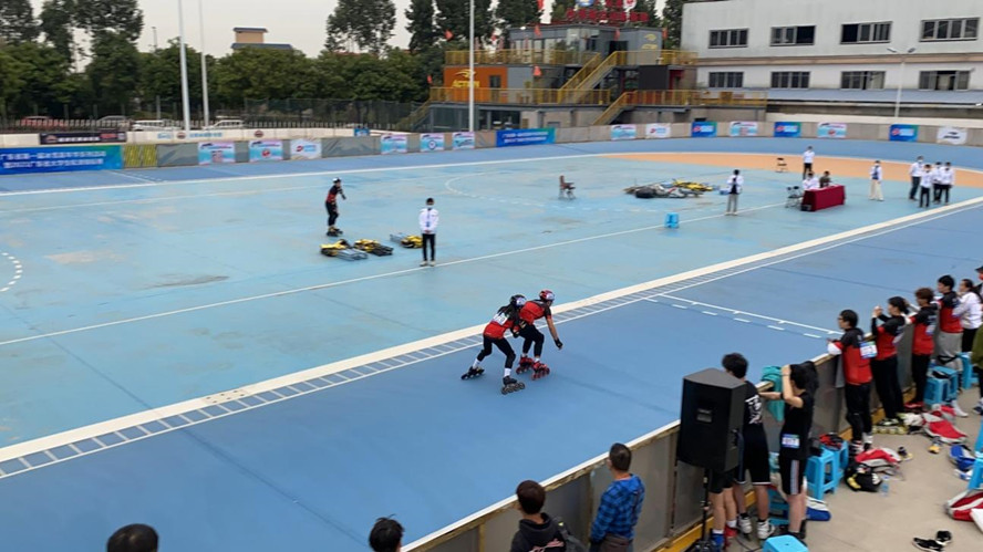 本网讯 12月19日,广东省第一届校园冰雪嘉年华系列活动暨2021年广东省大学生轮滑锦标赛在佛山顺德举行,由体育与健康学院党委副书记(主持工作)梁艳红担任领队、李灵超老师担任教练员、8名同学组成的williamhill威廉希尔官网代表队首次参赛,在赛场上顽强拼搏,奋勇争先,最终荣获甲组速度轮滑800米接力赛第一名、乙组速度轮滑800米接力赛第一名、甲组女子人花式动作计时第二名的优异成绩。