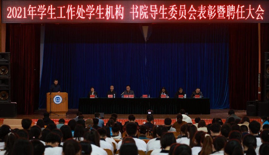 本网讯 12月22日,校学生机构、书院导生委员会表彰暨聘任大会在学生活动中心举行。学生工作处领导班子、书院院长、书院常务副院长以及二级学院辅导员和学生机构骨干代表参加了大会。
