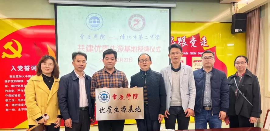 本网讯 为响应学校“优质生源基地”建设计划,12月22日,食品与制药工程学院党委副书记蔡振治、副院长马德运一行赴清远市第二中学开展“优质生源基地”签约及授牌活动,受到二中领导的热烈欢迎。