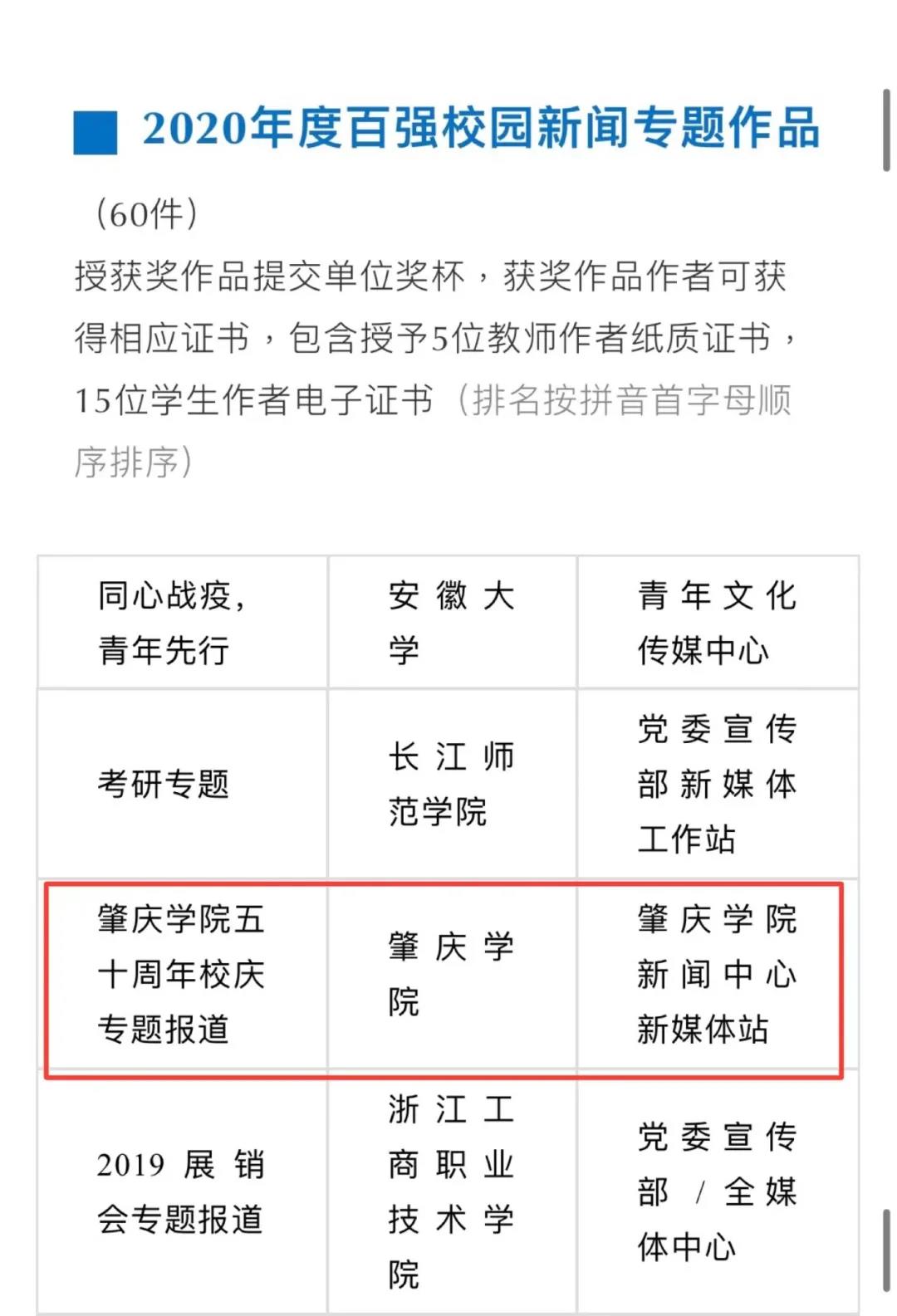 2020年,是williamhill威廉希尔官网建校50周年的重要年份,新闻中心全体师生锐意进取、通力合作,推出了许多既有深度又有温度的重磅文章。根据主办方评选要求,威廉希尔官网挑选了其中最有代表性的三个作品,组成媒体融合报道矩阵,这些作品在发布后均吸引了在校师生和广大校友的关注,并引来社会各界对于学校校庆的温暖祝福,在校园影响力和社会传播力上表现突出,符合活动主题要求,赢得众多评委青睐,因此也取得了百强校园新闻专题作品的荣誉。