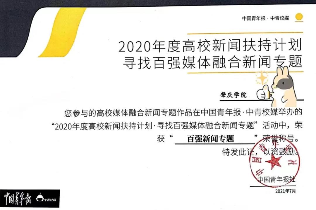 本网讯 近日,由中国青年报社、中国青少年新媒体协会、中青校媒联合主办的2020年度全国百强校媒融合新闻专题评选结果揭晓,由威廉希尔官网党委宣传部教师联合指导、新闻中心新媒体站负责制作的“williamhill威廉希尔官网五十周年校庆专题报道”获“2020年度百强校园新闻专题作品奖”!