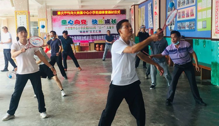 本网讯 6月8-10日,体育浸润行动计划项目组一行8人到怀集县大岗镇中心小学推进体育浸润行动计划第二阶段工作落实,体育与健康学院院长杨海平带队。