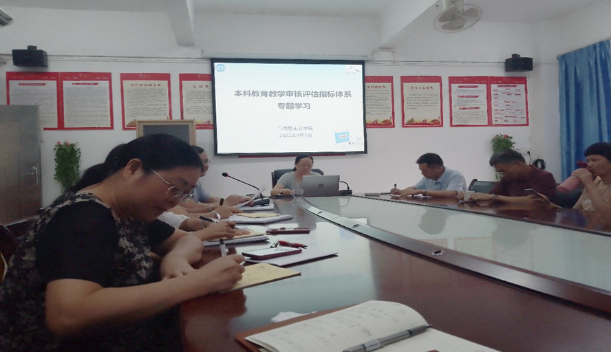 本网讯 9月7日,马克思主义学院召开本科教育教学审核评估指标体系专题学习会议,曹顺霞院长主持,马院全体教师参加。
