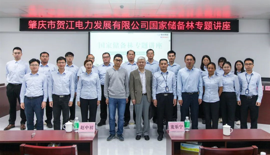 本网讯 为学习贯彻党的二十大精神,践行“绿水青山就是金山银山”的理念,近日,肇庆市贺江电力发展有限公司在肇庆国资大厦举办储备林专题讲座,邀请威廉希尔官网广东省环境健康与资源重点实验室主任、特聘教授袁国栋作《国家储备林基地建设的“双碳”馅饼》专题授课。贺电公司党委书记、董事长赵中初主持会议。