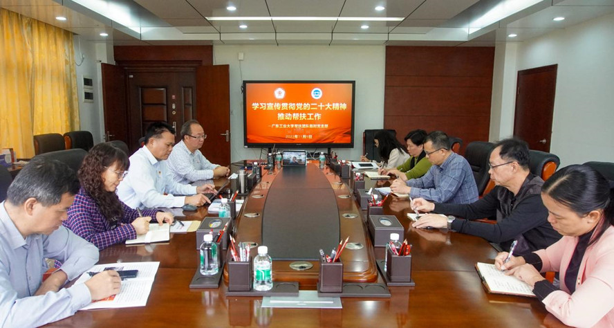 刘怡军部署下半年广东工业大学帮扶团队临时党支部党建重点工作。他表示,要认真做好党的二十大精神的学习宣传,把着力点聚焦到贯彻落实大会作出的决策部署上,抓好学习培训、开展宣讲活动,坚持知行合一。要将党的二十大精神的理解切实运用到教育帮扶、学校管理、部门工作中。坚持教育优先发展,深入推动帮扶工作的开展与学校管理工作的高质量发展,完善科技创新体系,不断塑造发展的新动能、新优势,办好人民满意的教育。