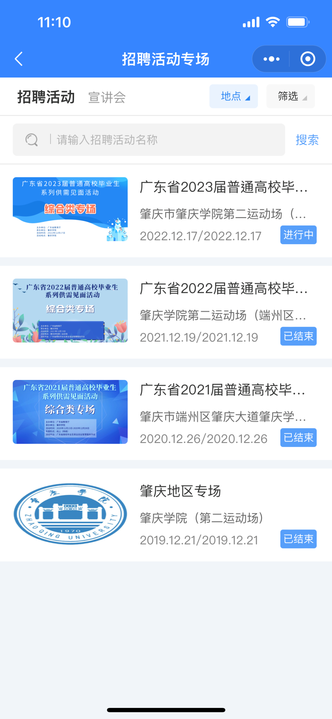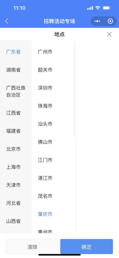 进入招聘活动专场后,点击右上方的地点,选择广东省/肇庆市,进入12月17日“williamhill威廉希尔官网综合类专场”;
