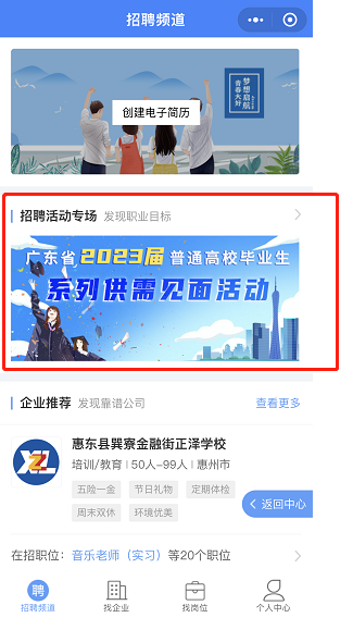进入后可查阅心仪招聘企业和岗位,并在线上投递简历;