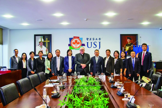 聖若瑟大學於昨日接待肇慶學院團隊一行六人到訪,學院領導與聖若瑟大學校長麥侍文會晤及出席簽署合作備忘錄儀式。由聖若瑟大學副校長農韻淇及肇慶學院副校長胡文濤簽署合作備忘錄,雙方對建立合作關係表達了熱切的期望,並強調培養國家和大灣區高質量人才及推動教育創新的重要性。該備忘錄概述多個合作領域,包括教師、研究人員和學生的互訪交流、短期講學、學術研討會及專題研究講座等。