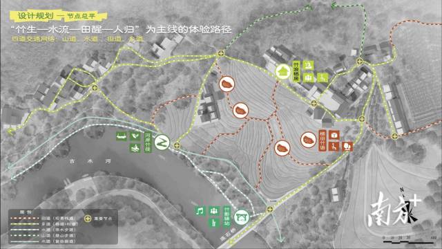 古水镇位于广东省西部,拥有古水河、竹林、梯田等丰富的自然资源和深厚的竹文化底蕴,具备发展生态旅游与特色产业的独特优势。针对当地解决旅游资源分散、文化体验不足等问题,该团队设计了山道、水道、田道、乡道4种路径将竹林、河流、梯田与村舍串联。