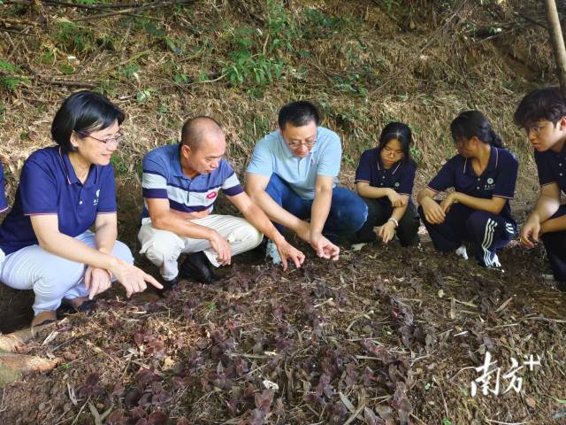 点草成“金”突击队与指导老师正在观察金线莲生长状态。