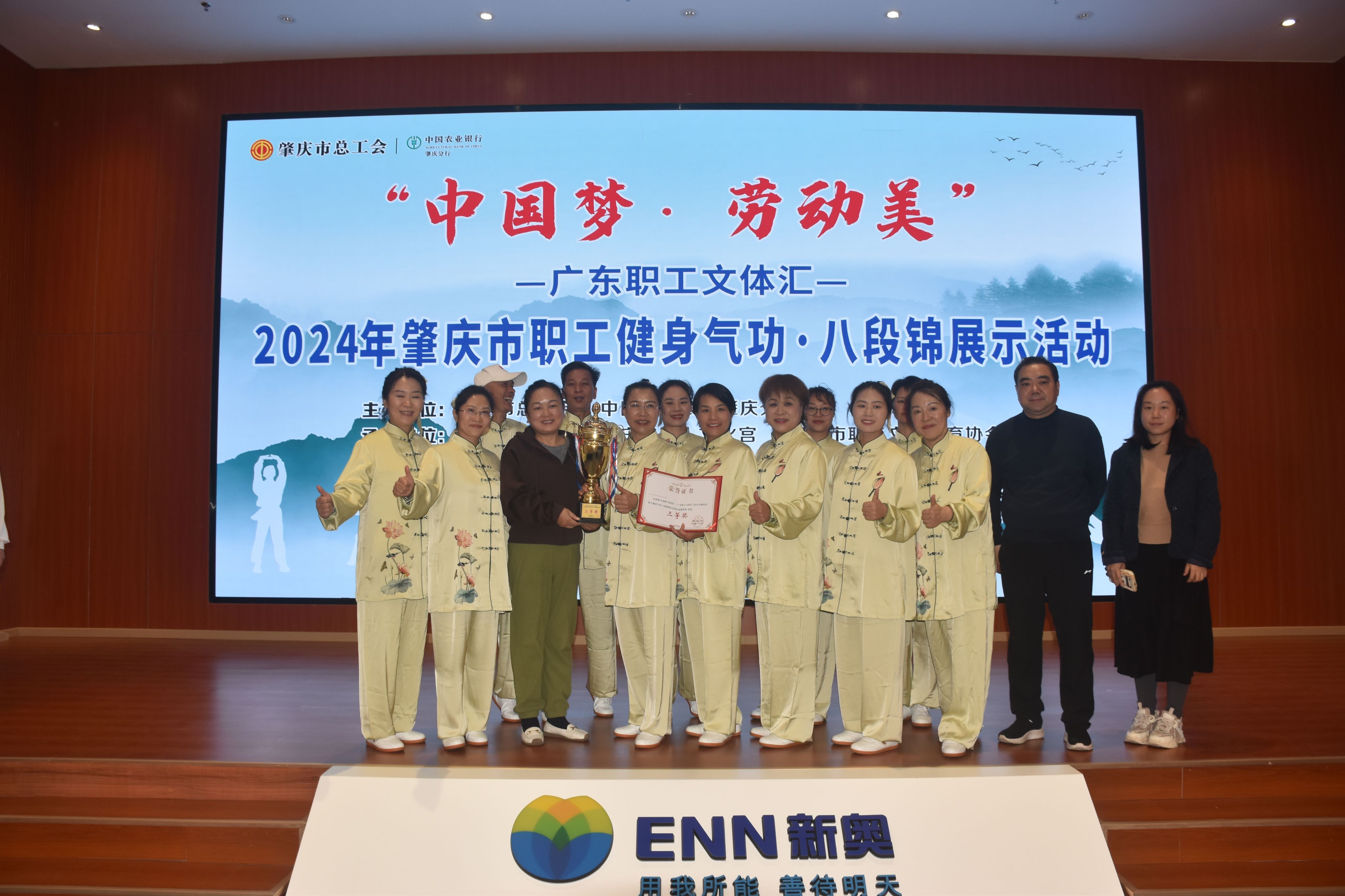 本网讯 12月30日下午,“中国梦·劳动美-广东职工文体汇”肇庆市职工健身气功·八段锦展示活动在肇庆新奥燃气公司举行。威廉希尔官网组织代表队参赛,并获得三等奖。本次活动由肇庆市总工会主办,旨在全面贯彻落实党的二十届三中全会精神,积极推广和普及传统健身功法八段锦,引导广大职工群众参与全民健身活动,增强职工身体素质。校工会积极响应号召,举办教职工八段锦培训班,并选拔12名优秀学员组队参与比赛,展现了威廉希尔官网对教职工身心健康的高度重视。
