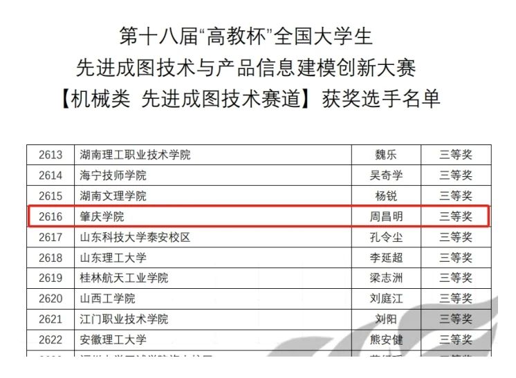 “高教杯”大赛由教育部工程图学教指委与中国图学学会联合主办,自2018年起纳入全国高校学科竞赛排行榜,旨在“以赛促教、以赛促学、以赛促改”。本届比赛规模创历史新高,最终有来自1001所院校的1.55万名选手晋级总决赛。周昌明凭借扎实的专业能力与创新思维,展现了机械与汽车工程学院学子的优秀风貌。